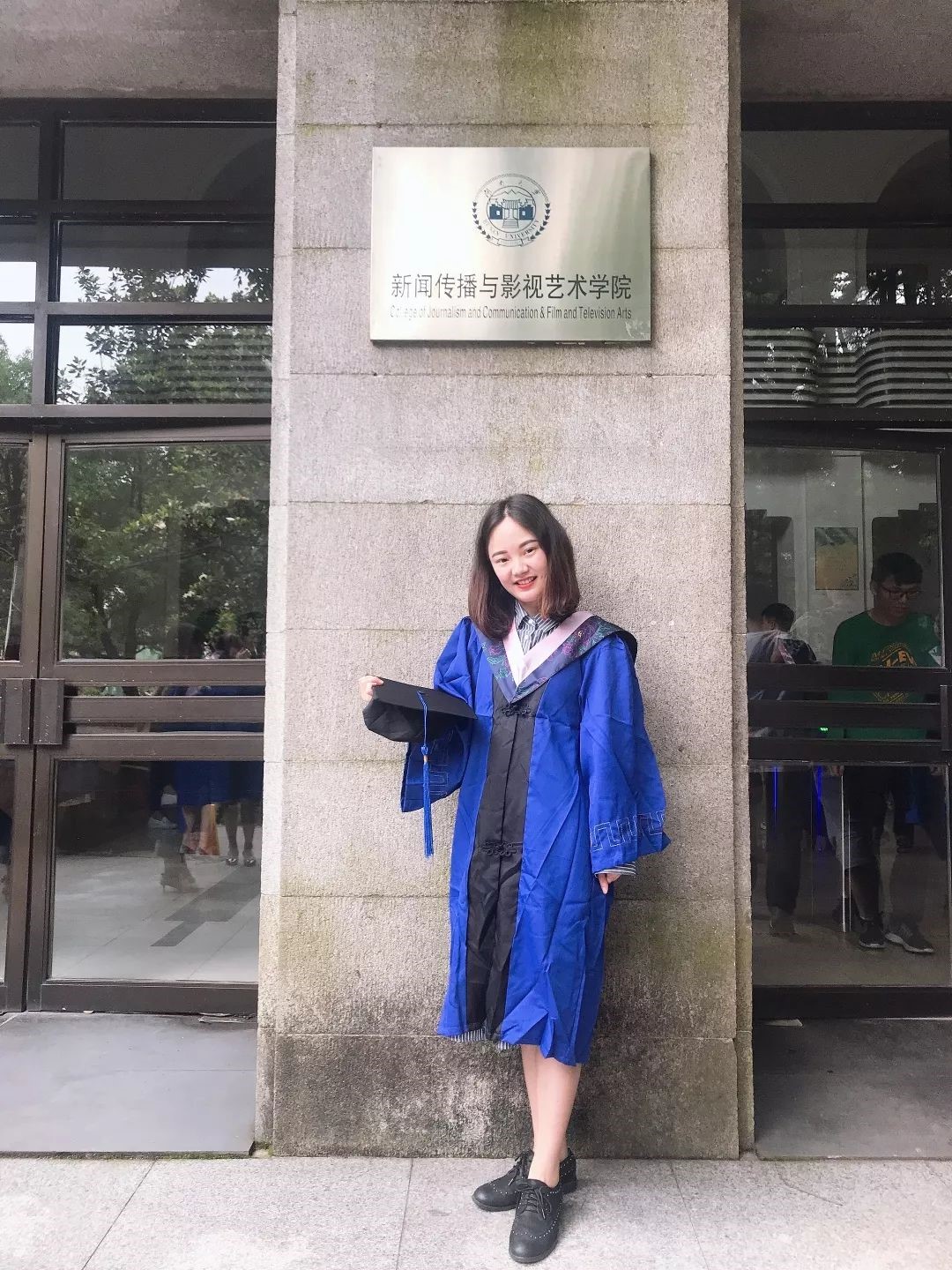 (杨湘雨在北楼前的硕士服照)
