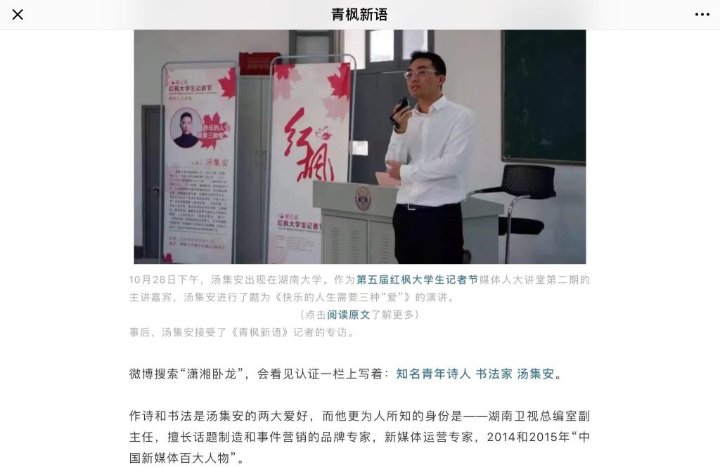 《湖南卫视品牌推手汤集安:用青春,去热爱》
