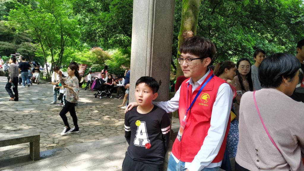 (图为志愿者和来岳麓山的小朋友)