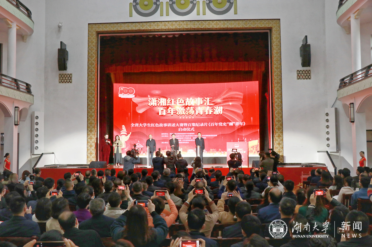 4月21日,由我校和湖南教育电视台承办的“潇湘红色故事汇·百年激荡青春潮”全省大学生红色故事讲述大赛暨百集纪录片《百年党史“潮”青年》启动式在校大礼堂举行。湖南省委常委、宣传部部长张宏森出席并讲话,湖南省副省长谢卫江出席,国家广电总局网络视听节目管理司一级巡视员董年初,以及省相关部门负责人,全省各高校分管校领导、宣传部长等共400余人参加启动仪式。校长段献忠致辞。