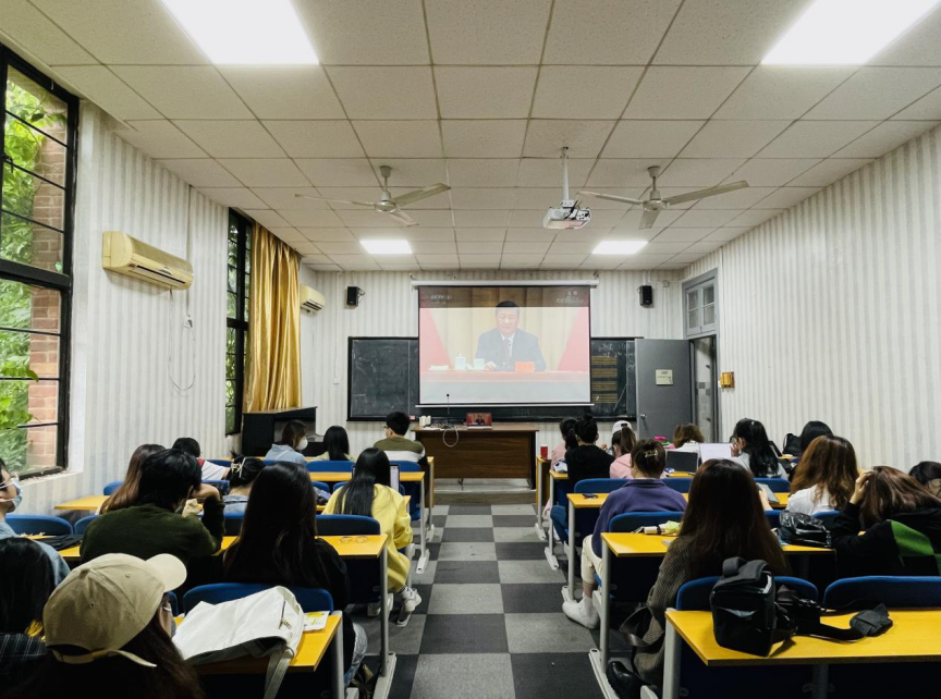 各团支部、全体团学骨干在北楼311集中观看直播,其余同学通过线上班会的形式同步收听收看习近平总书记的重要讲话。