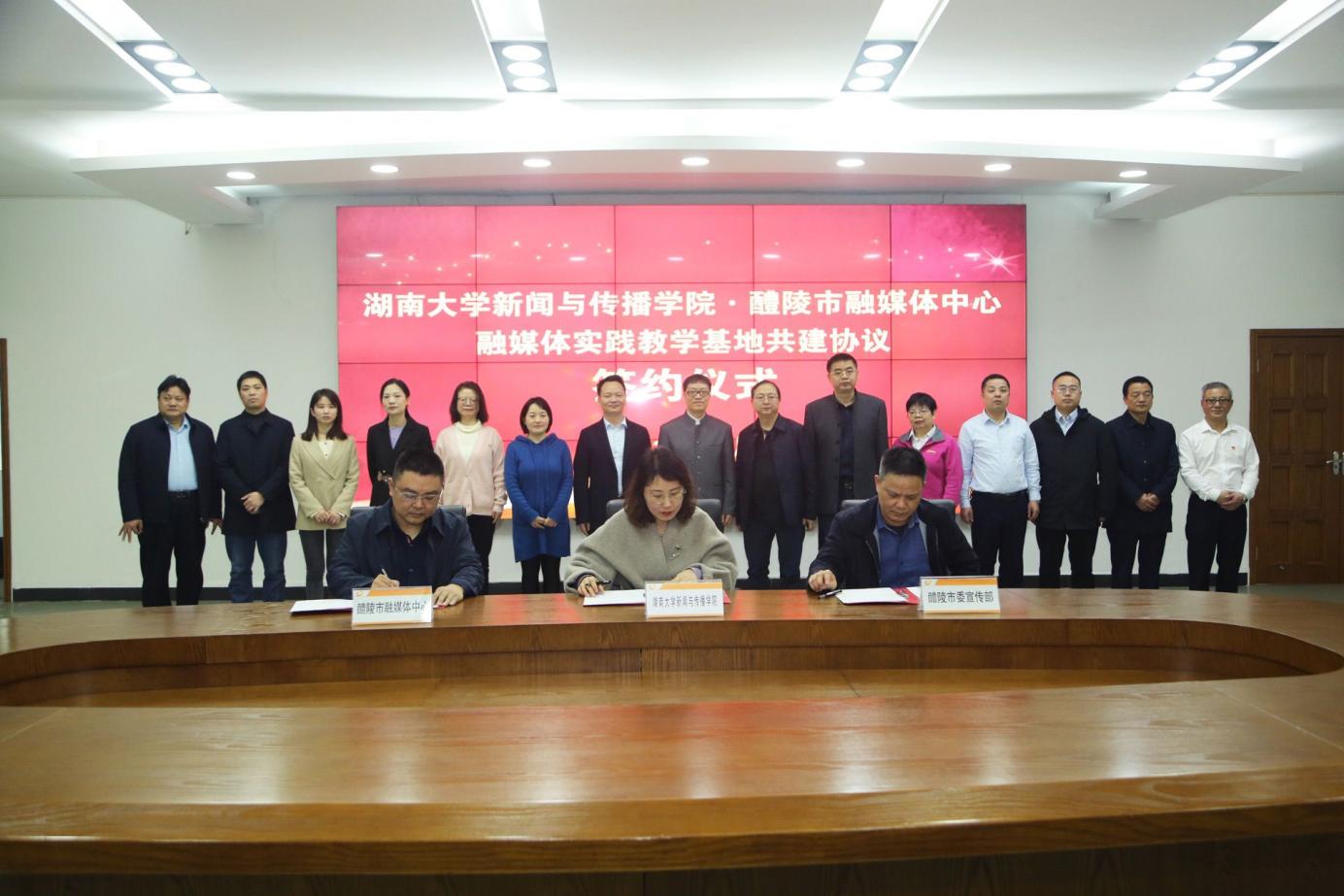 与醴陵市融媒体中心举行共建实践教学基地签约暨揭牌仪式,携手共享融媒教育资源,共育融媒专业人才。