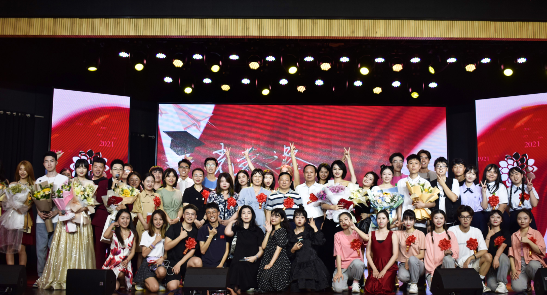 庆祝建党100周年暨2021年毕业晚会于天马小剧场隆重举行。校党史学习教育第四巡回指导组杜玉丰老师、学院党委书记胡建国、党委副书记李洪玉及其他学院老师现场观看晚会。