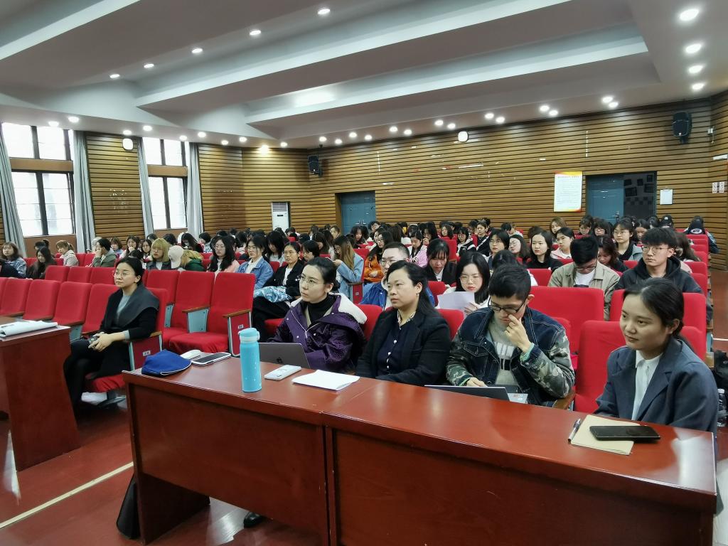 接着,教学副院长谢莹对专业分流进行了总体的介绍。目前,湖南大学新闻传播学大类下设新闻学与广告学两个方向,选修课需修满21学分。同时,教学副院长对新闻学和广告学的师资力量、课程设置、赛事活动、保研考研、就业情况都做了介绍和分析。