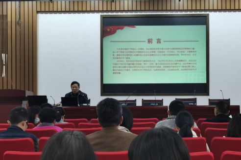 4月13日,av视频 召开学院党史学习教育宣讲大会在学院217报告厅举行。大会由学院党委副处级组织员孙建中主持,党委书记、湖南大学党史学习宣讲团成员胡建国作宣讲,全体在校教职工党员参加了此次学习。