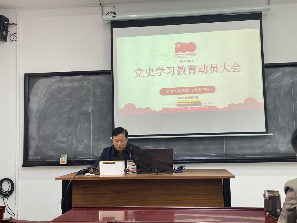 为深入贯彻习近平总书记在党史学习教育动员大会上的重要讲话精神,进一步激发基层党组织活力,以积极的面貌庆祝建党100周年, 3月30日,av视频 在北楼312教室召开党史学习教育员大会暨第一次专题党课。大会由学院党委副书记李洪玉主持,党委书记胡建国作动员并做第一次专题党课,学院领导班子、学院全体教职工党员参加了此次大会。