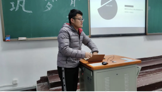 12月18日上午8时新传2002班全体同学在中楼115率先开展,并邀请了辅导员黄坤林参加。李子扬同学回想到,班会中印象最深刻的是黄坤林老师发言的环节,黄坤林老师先是为全班的同学解答了关于早晚自习、学习python课程以及小学期等最令人关切的问题,并强调了学习Python课程的合理性和重要性。他说:“一定要重视学习和阅读阅读,对于我们这个专业,知识广度和深度无论对就业求职还是保研读研都至关重要。”建议同学们一定要珍惜时间,好好学习。随后,黄老师通过分享了自己在大学阶段的一些有趣经历与真实想法,与同学们平等对话,亲切交流,班会气氛更加轻松活泼,同学们也在班会中有所收获。