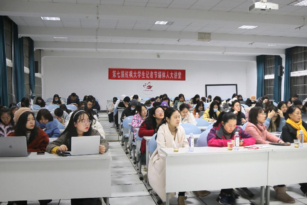 新传院党委副书记、纪委书记李洪玉,院学工办、实践教学部、新闻系、新媒体系的教师代表,以及各年级学生代表聆听了本次讲座。