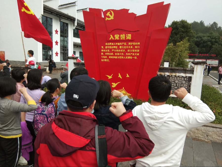 31日上午,同志们来到了郴州汝城瑶族村,参观了“半条被子的温暖”专题陈列馆、“半条被子”纪念广场和徐解秀老人的故居,重走考察路,重忆当年情。在陈列馆门前,全体党员面对党旗,庄严宣誓,重温入党誓词。