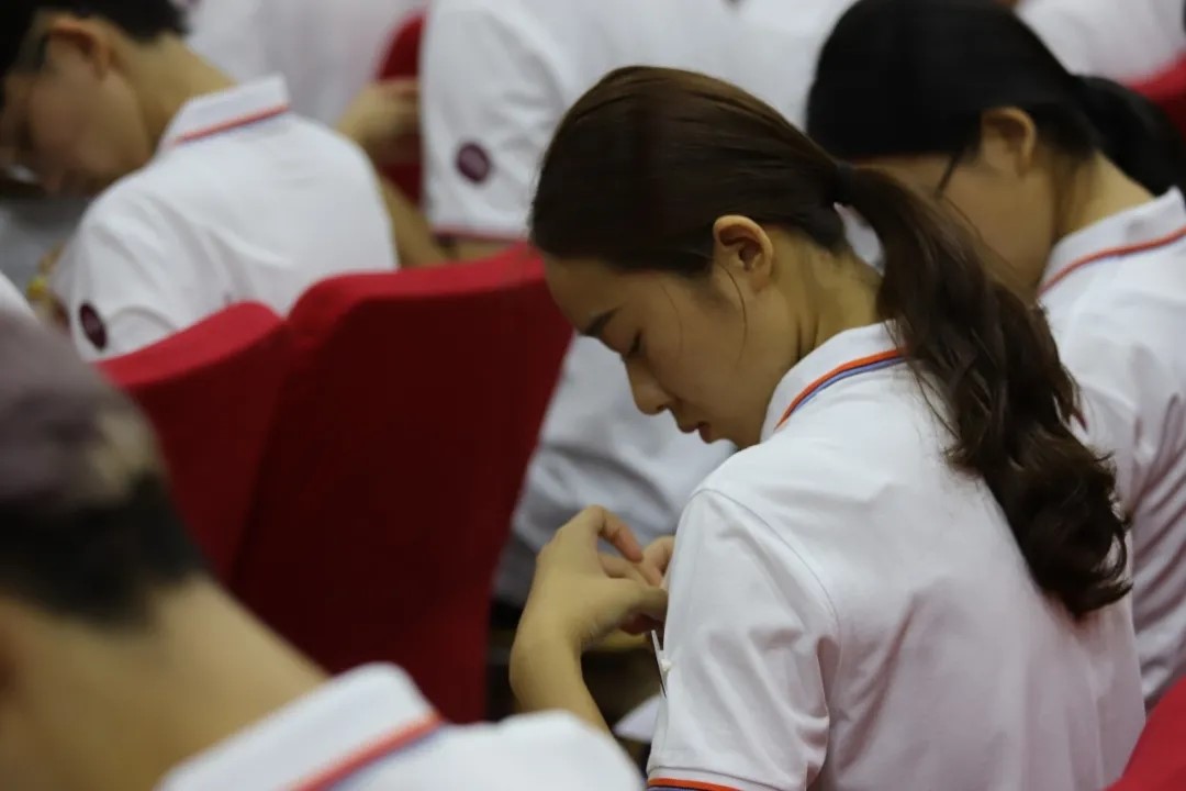 第三阶段,校徽佩戴仪式。会上,各班班助给新生发放了校徽。新生们收到校徽后,郑重地佩戴在右胸,表情认真严肃。在带上校徽的那一刻,他们就真正成了湖大的一份子,成为了新湖大人。