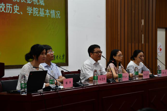 首先院长彭祝斌向家长介绍学校历史和学院基本情况。彭院长谈到:湖南大学作为千年学府、百年名校,新闻传播历史由来已久,历年来走出了许多知名校友。我校的新闻学专业于1995年设立,2008年成为教育部国家级特色专业。学院设立四个本科专业,均位于全国前列。学院坚持“夯实基础、强化实践、开放融合、追求卓越”的办学理念,统一安排学生在省级以上主流媒体进行实习,努力培养高素质传媒人才。最后彭祝斌院长还提出三个“心”:第一、放心,让家长们把孩子放心地交给我们。第二、用心,家长和学校用心关注孩子成才、成人的过程。第三、舒心,共同努力让家长、孩子、社会满意。