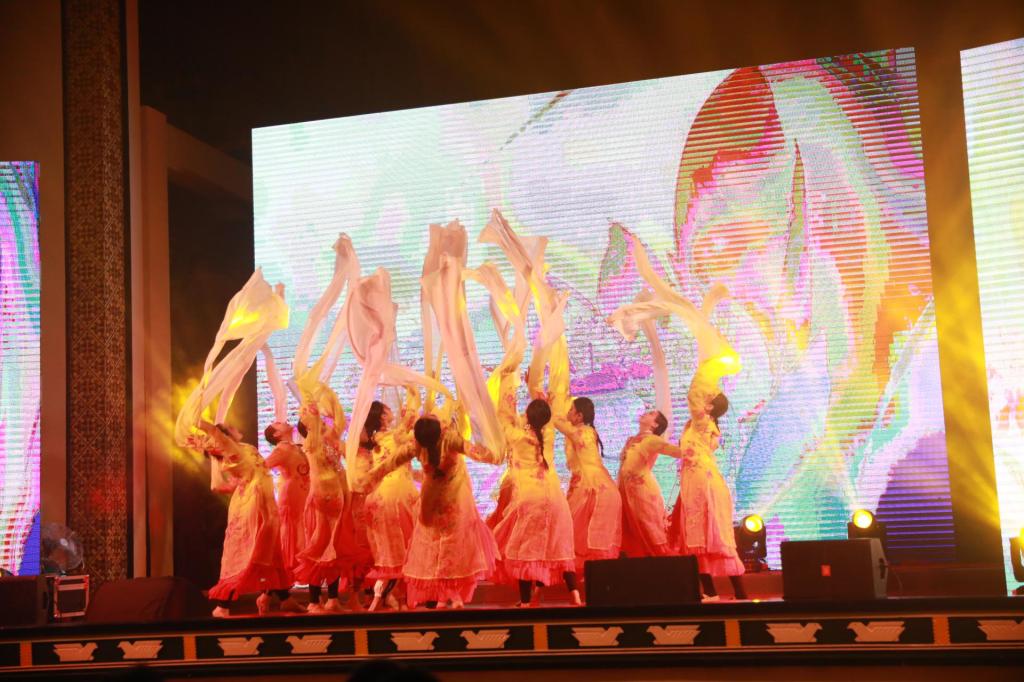 接下来的节目,无疑是所有观众最期待的——军训团队准备的表演。一段rap将情绪带起,《沙漠骆驼》的歌声中,班助学长学姐们带来了精彩的走秀。之后,更有播音班的舞蹈节目《去看海》、新传1804班的杯子舞《稻香》和播音班的朗诵《我爱你中国》。最后,在全体演职人员的《仰望星空》中,本次迎新晚会接近尾声。
