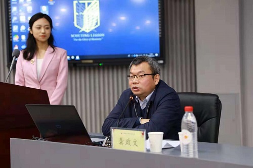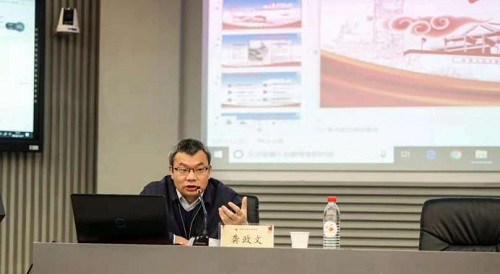 在高校校媒学生代表的热烈掌声中,湖南日报社党组副书记、副社长兼总编辑龚政文开始了“让党报的旗帜高高飘扬在舆论场上”的主题讲座。