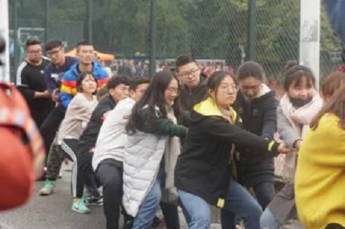 上午的拔河比赛备受关注。尽管av视频 在第一轮败给物电院,但士气不减,在第二轮成功击败环境院,夺得乙组第二名的好成绩。