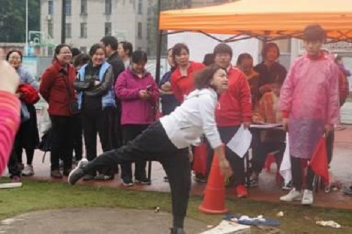 随着裁判的号令,铅球在空中划出一道漂亮的弧线。新影院选手凭借高超的投掷能力一举拿下了男子乙组铅球第一名(并列)。