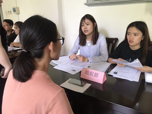 面试现场气氛十分火热,面试工作有序开展。各部门负责人根据各部门工作性质和工作重点严格考察候选人的各方面能力。例如,“当工作和学习发生冲突时你该如何处理”,“你能为当前的部门工作提出什么建议”,“你可以忍受每天琐碎枯燥的工作吗”……