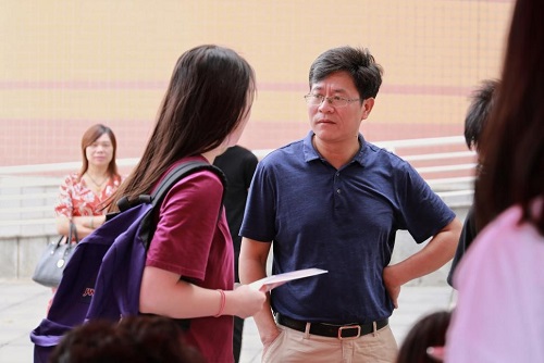 研究生迎新点慰问迎新志愿者。随后,在潘少光老师的陪同下,彭院长等人来到望麓桥学生公寓,与已经入住的2018级研究生新生进行了交流。院长与书记们十分关心同学们的研究生学习与生活,询问了同学们的专业方向、导师选择、家庭情况等,鼓励大家遇到问题要主动积极与辅导员进行沟通,切实解决大家的问题。