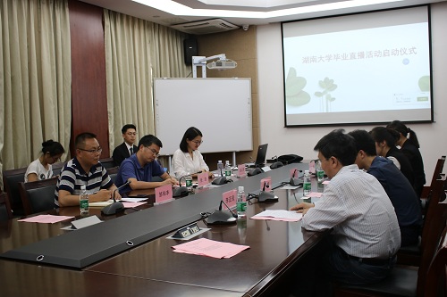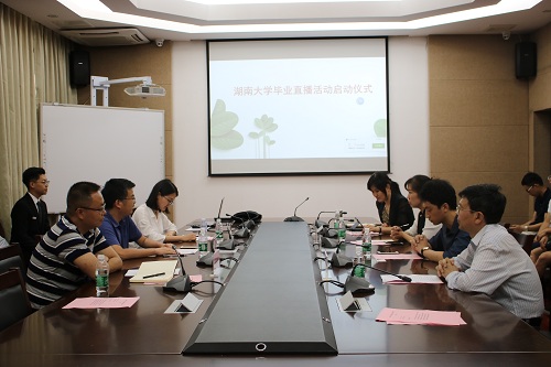 6月14日,由湖南大学新闻传播与影视艺术学院主办2018年“直播我们的毕业”毕业季系列活动启动仪式在北楼举行。活动由湖南大学敢为先文创团队策划执行,联合映客直播、达美文化传播有限公司两家传媒公司共同举办。