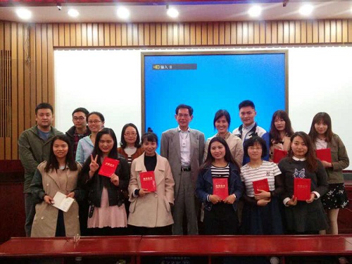 讲座正式开始前,段教授为日本侨报出版社与湖南大学新影院联合举办的首届“湖南元素与国际传播”征文获奖同学进行颁奖,并鼓励同学们积极参加第二届征文活动,将湖南元素放到世界舞台。段教授分享了再次带领日本岛田晴雄教授访问湖南的经历,他将这件事完整生动地记录在朋友圈,“微信等发展很快的自媒体平台,我们应该利用它们向国际社会讲好我们的湖南故事。”段教授说到。