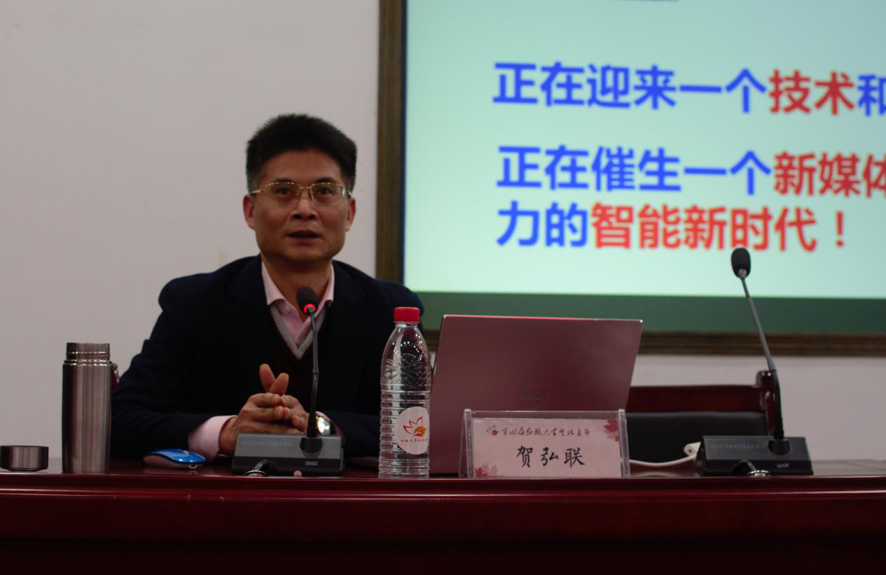 11月24日晚七点半,第四届红枫大学生记者节系列活动之媒体人大讲堂第四期在湖南大学北楼217报告厅举行。湖南红网新媒体集团党委副书记、总编辑,湖南省新媒体协会秘书长贺弘联,与来自全国各地的高校校媒、记者分享他对新媒体时代媒体活动变革的看法。