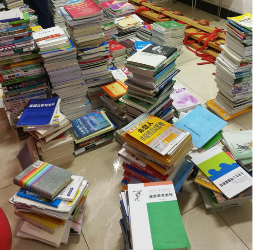 前期筹备工作中,志愿者奔天马走德智,进行图书收集活动。我们采访了参与其中的新传1702班黄罗华同学,他说,感觉每次敲门收书都是不一样的体验,因为你不知道打开门的是什么样的人,但他们似乎都有一个共同点,善良与热情,大家都积极配合我们,义务捐赠书籍,我敲了一整栋宿舍楼的门,成果颇丰,收书非常顺利!
