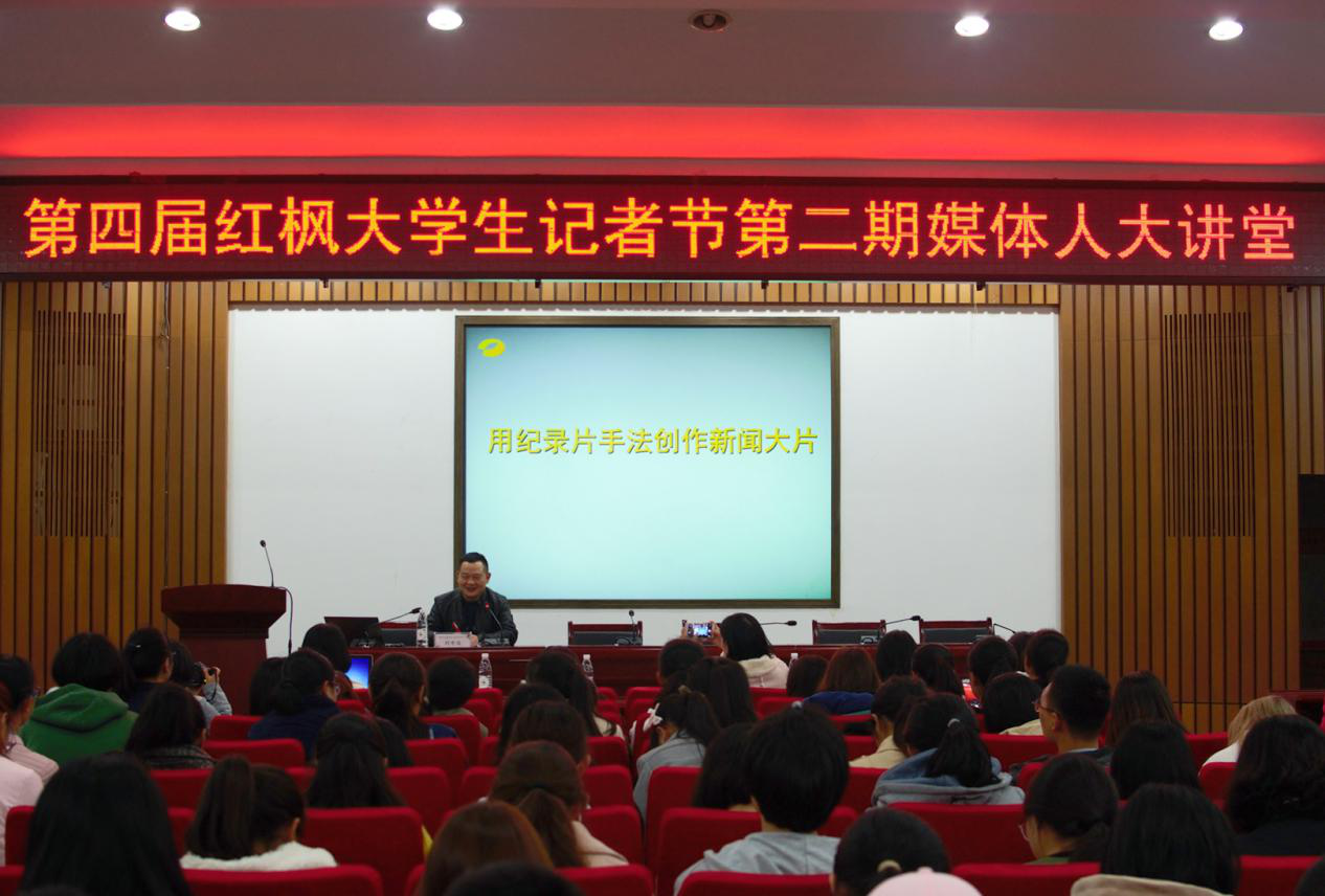 11月14日下午三点,第四届红枫大学生记者节媒体人大讲堂第二期在湖南大学北楼217报告厅举行。湖南广播电视台av视频中心 编辑刘学波与在座的新闻学子分享了他在工作中对新闻的感悟。
