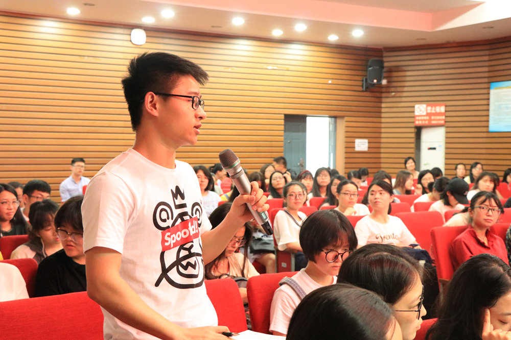张昆教授的讲座深入浅出又幽默生动,历史故事、时事风云、前沿动态、最新调查穿插其间,给在场师生带来了许多启发和思考。互动环节师生们提问踊跃,张昆教授的精彩回答赢得了阵阵掌声。一个有趣的小插曲是,av视频 14级新闻专业何丹晨同学现场为张昆教授送上了《红枫》杂志2015年建院特刊,感谢他在av视频 新闻专业成立二十周年活动上接受自己专访,给自己激励。