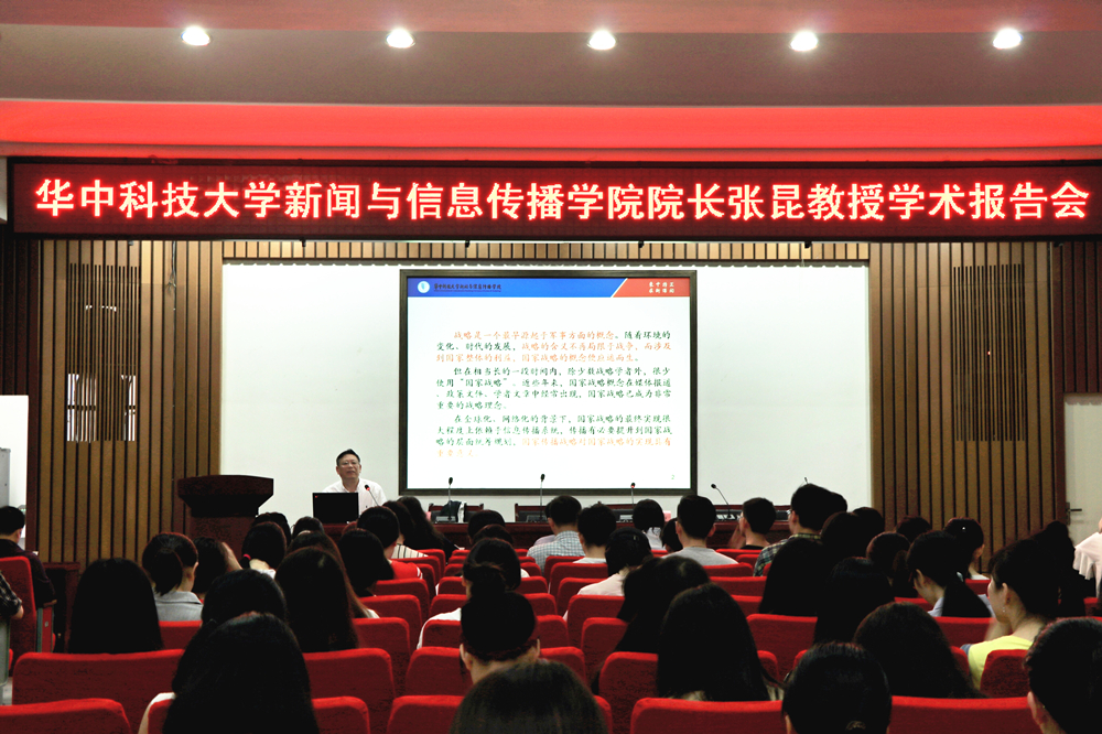 5月6日上午,中国新闻传播研究和教育领域杰出学者、华中科技大学新闻与信息传播学院院长张昆教授做客湖南大学“千年论坛”,主讲“关于国家传播战略的思考”。此次学术报告会由湖南大学社科处主办,新闻传播与影视艺术学院承办,新影院院长彭祝斌教授主持。副院长向志强、党委副书记兼副院长程华及100多名师生参加讲座。