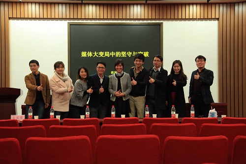 互联网时代改变了人们的生活方式,人们获取信息的方式发生悄然转变,媒体经历大变局更是趋势所在。但是,在新媒体疯狂挤占纸媒生存空间的大环境下,传统媒体又会有什么样的坚守和突破?媒体人会坚守什么样的情怀和理想?2016年3月24日晚19时,欧家锦携吴晓波(长沙)书友会班委一同走进湖南大学新闻传播与影视艺术学院,就传统纸媒遇到的挑战与机遇、媒体人的情怀与理想等问题为新影院的同学答疑解惑,新闻传播与影视艺术学院党委副书记程华出席交流会。