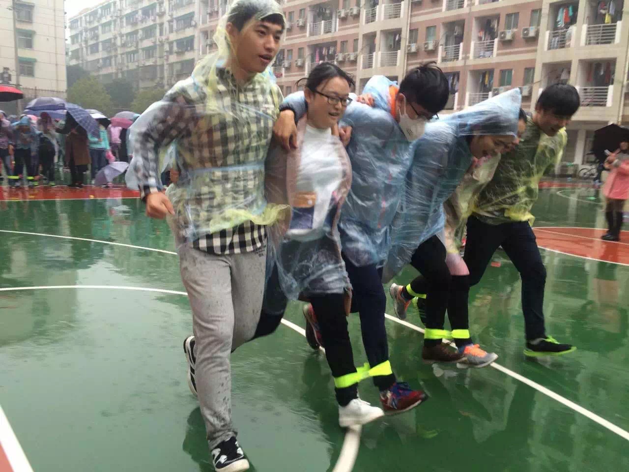 比赛时大家积极投入比赛,尽力完成每个项目的角逐。比赛过程中场内场外一样火热,欢声笑语也不断发出。在瞎子背瘸子的比赛中,负责背人的同学被蒙上了眼睛,旋转3圈后再背着队员出发。由于看不见,走的歪七扭八的选手们闹出不少乌龙,惹得场边发出阵阵笑声。六人七足的比赛中,av视频 研究生在“一二一”的整齐口号中齐步向前,勇夺第一名。螃蟹接力跑项目也在同学们的努力下夺得头名。此外,还有托球跑、翻山越岭、拔河等趣味项目,每个同学都积极投身到各项比赛中。雨未停过,同学们的热情也一直高涨。
