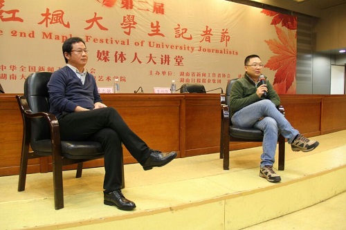 11月14日14点30分,第二届红枫大学生记者节媒体人大讲堂第三期在湖南大学逸夫楼报告厅举行。本次活动邀请到财新传媒首席技术官、网易第6号员工黄志敏先生和湖南卫视《湖南新闻联播》制片人、电视评论专栏《胡湘平》主笔李越胜先生。