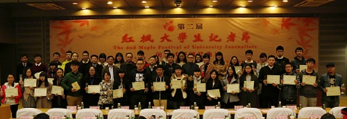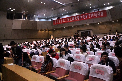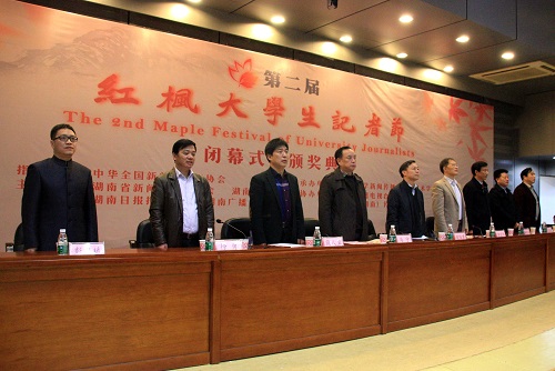 自10月1日新闻作品大赛暨“人气校园媒体”、“人气校园记者”评选活动征集开始以来,第二届红枫大学生记者节在经历了启动仪式、新闻作品大赛、媒体人大讲堂、长沙采风、校园媒体峰会等系列精彩纷呈的活动后,于今天上午9时在湖南大学逸夫楼报告厅迎来了闭幕式暨颁奖典礼。