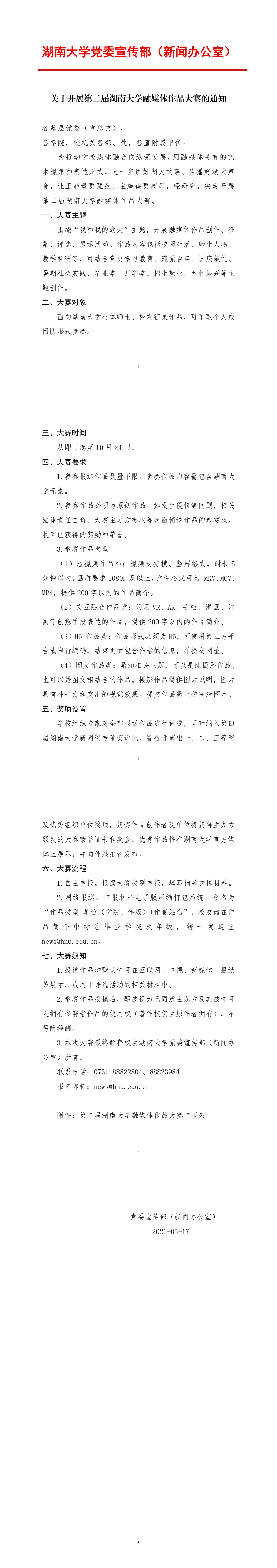 关于开展第二届湖南大学融媒体作品大赛的通知