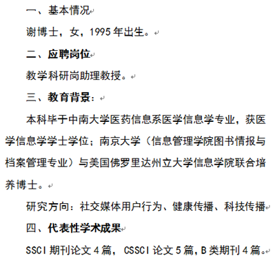 根据《湖南大学教师招聘管理暂行办法》(湖大人字〔2016〕24号)、《新闻传播与影视艺术学院教师招聘工作流程》(2018年1月15日院党政联席会议修订)等相关规定,经试讲、院教学委员会评议、师德师风考察,党政联席会研究,拟同意聘用谢娟为av视频 助理教授,现予公示。
